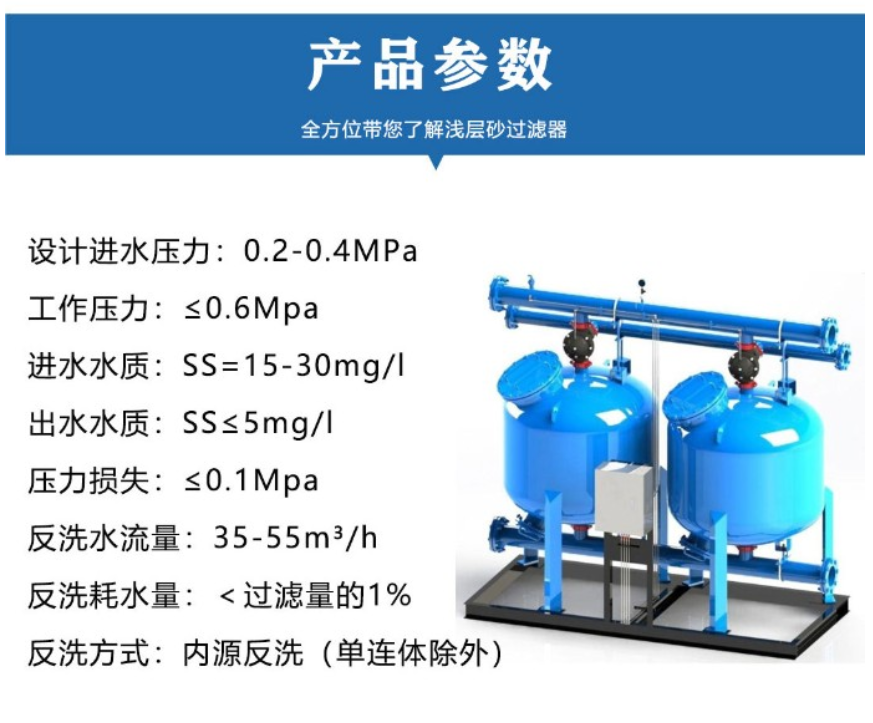 當系統(tǒng)處于過濾狀態(tài)時,加壓水從濾罐進口流入布水系統(tǒng),均勻的到達濾料層。當水流過濾料層時,懸浮物被濾料截留。過濾器底 部有帶精密縫隙的集水器,過濾后的水被均勻收集,并流出過濾器。集水器上的精密縫隙能防止濾料的流失。機械聯(lián)動堞閥(氣動或 電動)控制著水流的方向。 當系統(tǒng)處于自動反沖洗狀態(tài)時,反洗周期由不斷增加的壓力差控制。隨著雜質在濾料層中不斷聚積,壓力損失不斷增加,當壓差增加 到某一設定值時,系統(tǒng)將自動轉換至反洗狀態(tài)。加壓水通過流化裝置(即集水裝置)進入濾料層,對其進行沖刷,使截留的污染物脫落 并排出過濾系統(tǒng)。反洗持續(xù)至少2分鐘后,閥門自動將系統(tǒng)轉至過濾狀態(tài)。